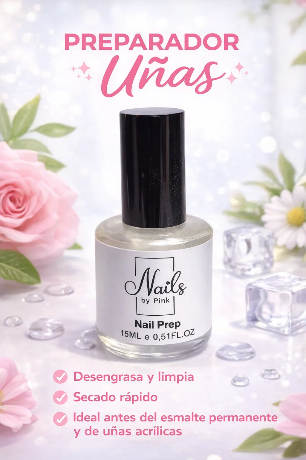 El Deshidratador (Nail Prep) es un líquido preparador de uñas que se aplica antes de cualquier sistema de esmaltado o construcción para eliminar la humedad y los aceites naturales de la uña, mejorando la adhesión del producto 💅✨